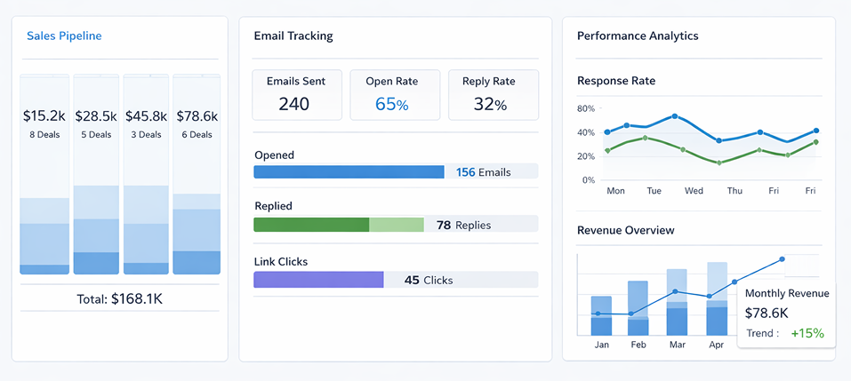 Les relances, ouvertures d’emails et interactions sont tracées, ce qui améliore la gestion des prospects.