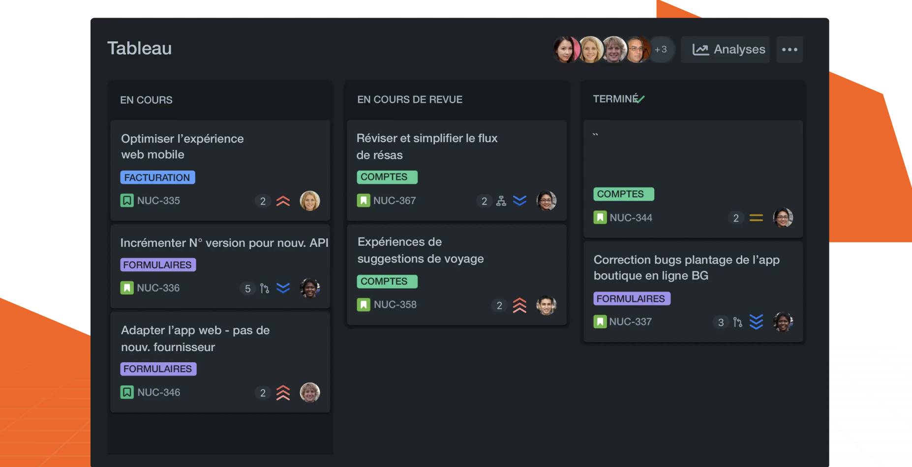 • Des tableaux personnalisés pour visualiser le flux de travail.